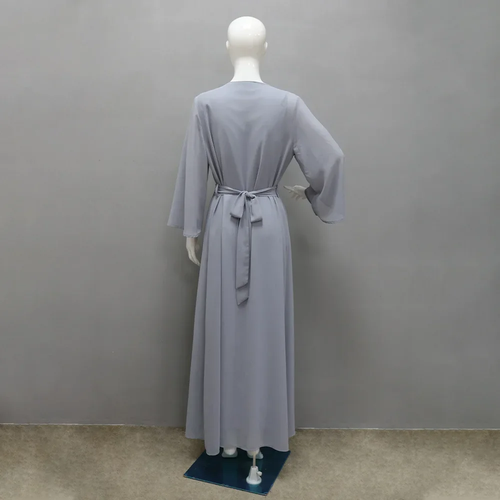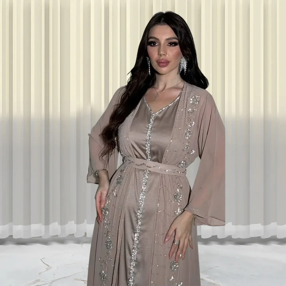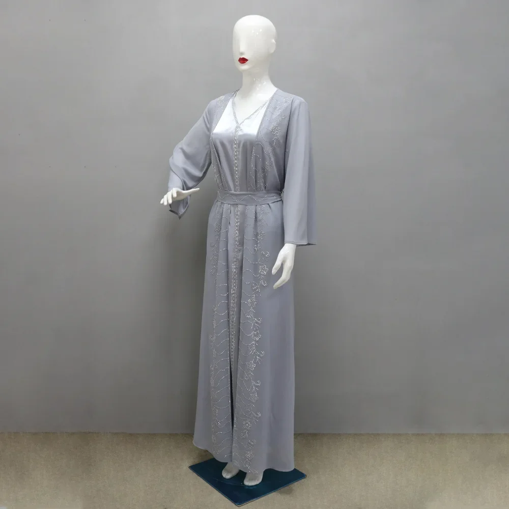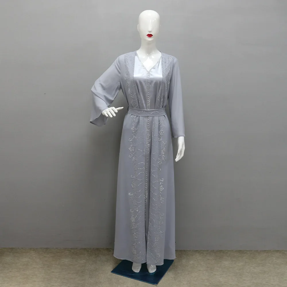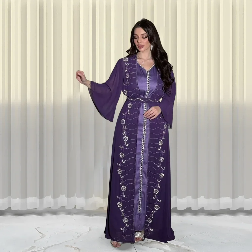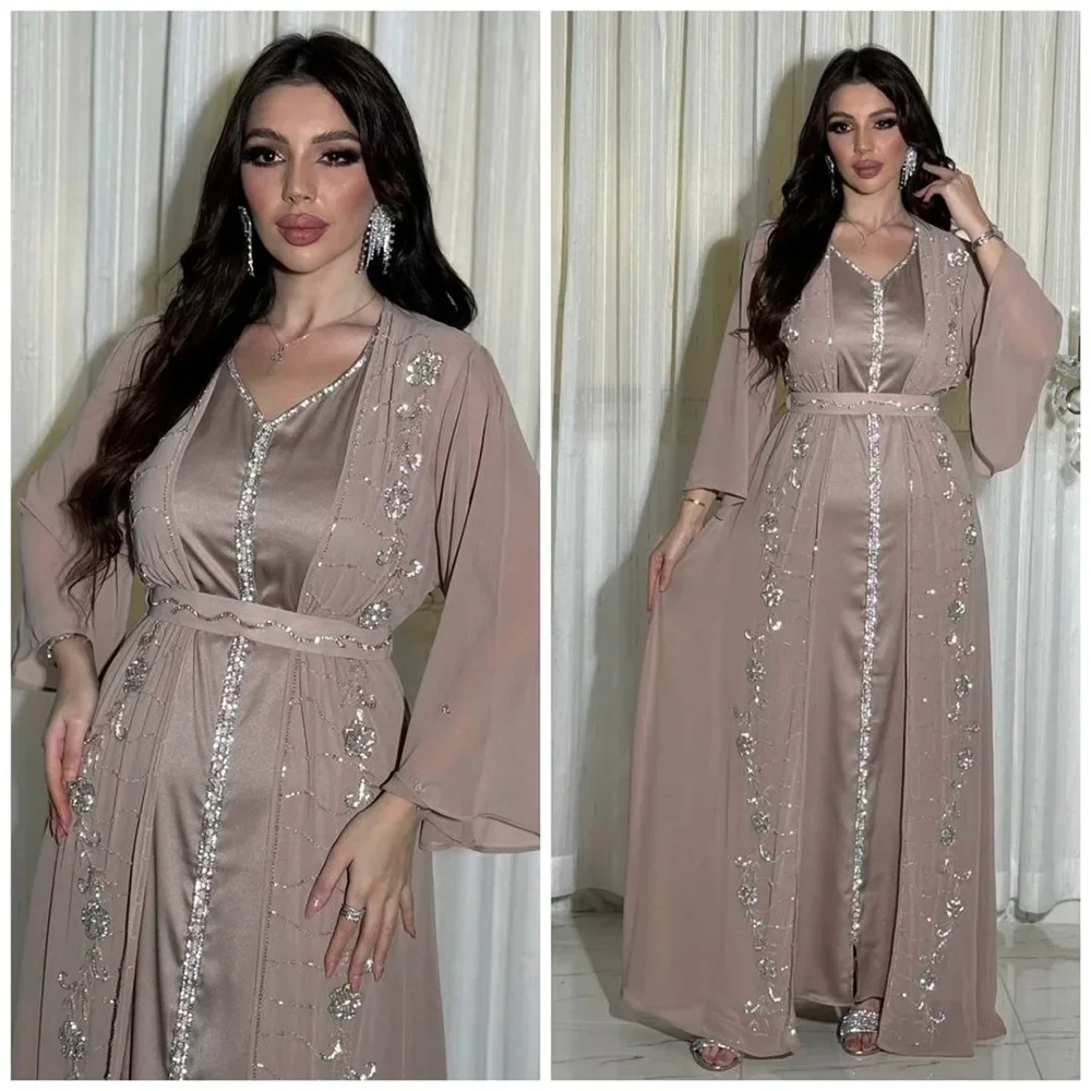 Autumn Fashion Muslim Dresses for Women Muslim Long Sleeve V-neck Party Evening Long Abay Dress Suit Inner and Abaya Outfits