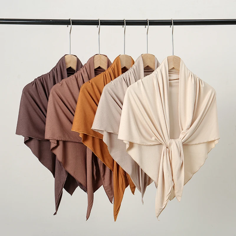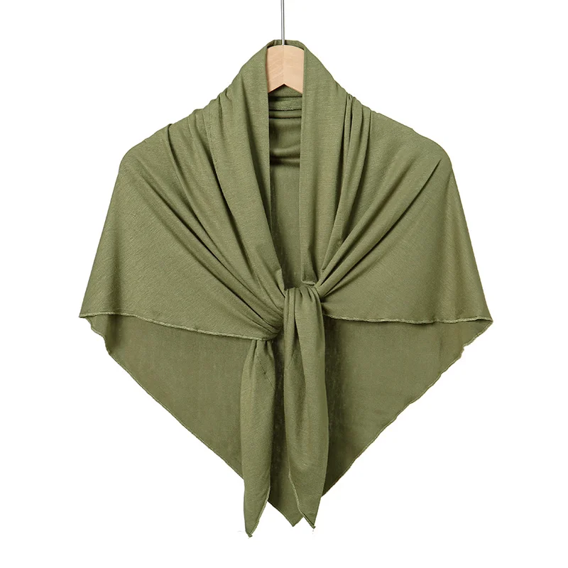 Solid Color Cotton Triangle Scarf Muslim Hijab Shawls Woman Soft Wraps Lady Fashion Causal Turban Islamic Jersey Headband